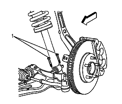 3. Remove the lower mounting bolts (1) for the shock absorber.