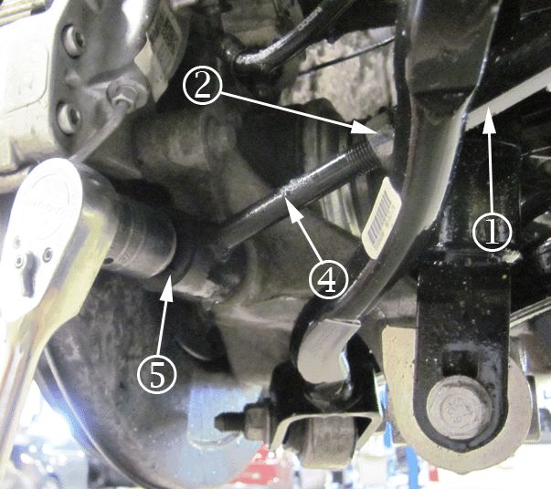 - Apply a rearward (rear of vehicle) tightening force to the torque wrench to properly tighten the jam nuts on the driver's side of the vehicle.