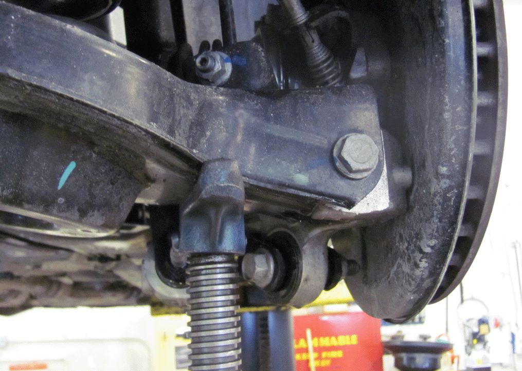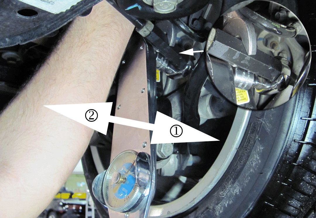- Apply a forward (front of vehicle) tightening force to the torque wrench to properly tighten the jam nuts on the passenger's side of the vehicle.