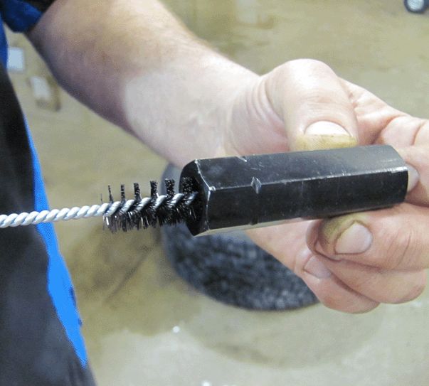 6. Clean the adjustment link with a soft wire pipe cleaning brush to remove loose corrosion or dirt.