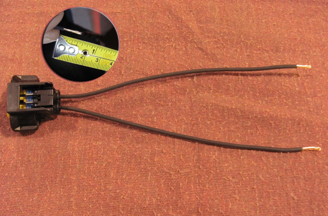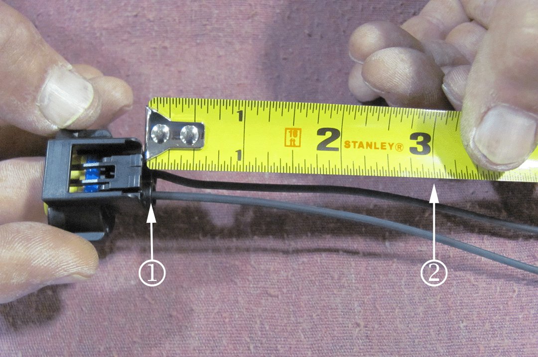 6. Measure the length of the service pigtails. Measure the service pigtails from the back of the connector (1) to the end of the two wires. The length of the service pigtail should be 76 mm (3 in) in length.