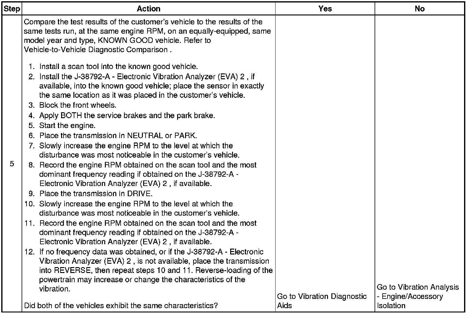 5. Making comparisons of the customer's vehicle with an equally equipped, same model year and type, KNOWN GOOD vehicle will help determine if certain disturbances may be characteristic of a vehicle design.