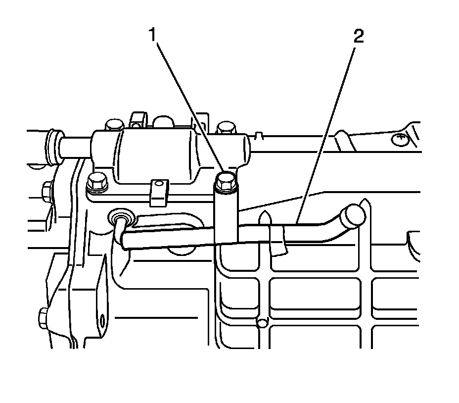 6. Remove the bolt (1) securing the vent hose to the transmission.