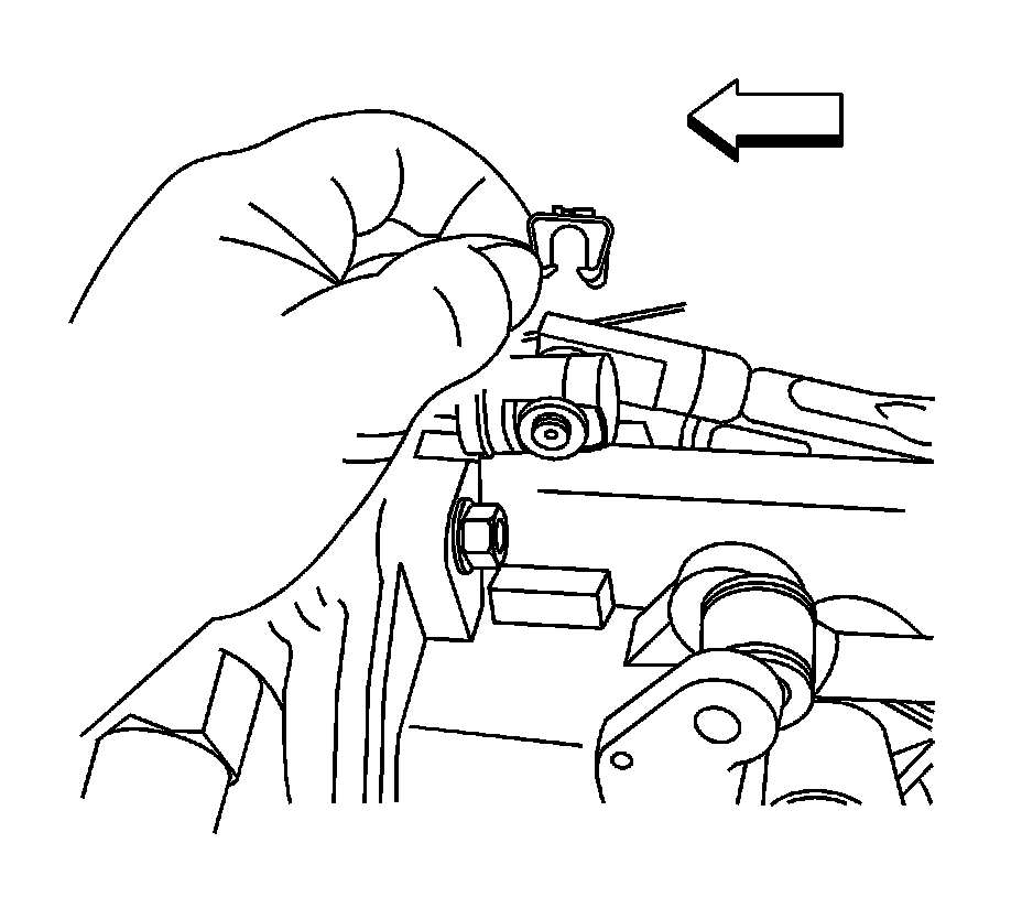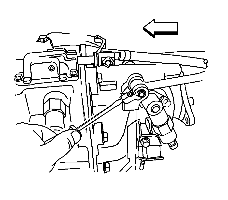 12. Using a flat-blade tool, release the left side shift control rod pin retainer. The graphic shows the transmission removed for clarity.