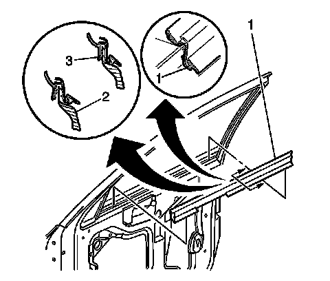 1. Install the sealing strip (1) to the door flange on the door inner panel.