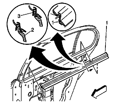 3. Starting at the forward end of the inner belt sealing strip, pull upward to release the strip.