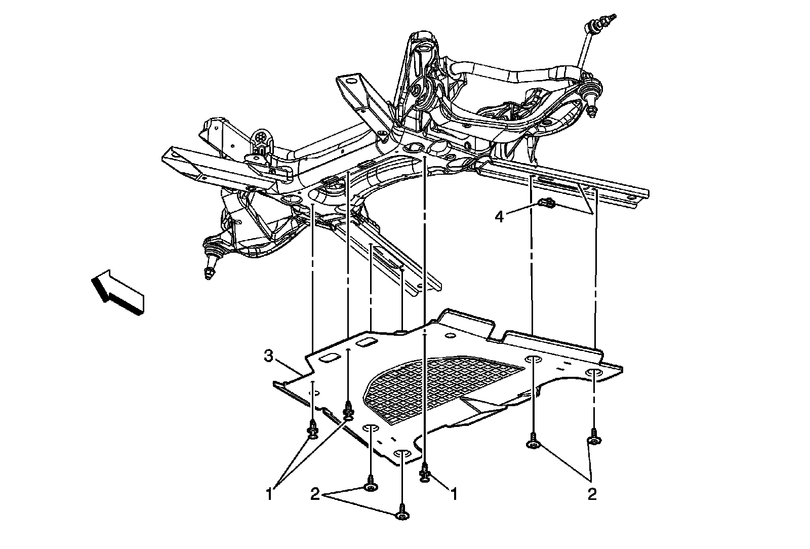 Front Compartment Lower Noise Shield Replacement (Rear Wheel Drive)