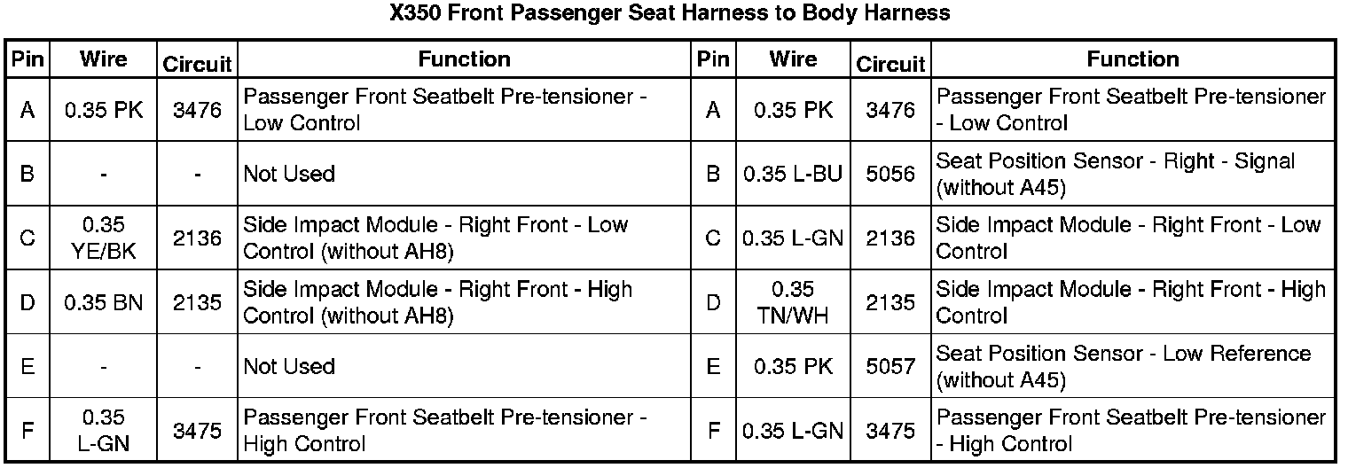 X350 Front Passenger Seat Harness to Body Harness