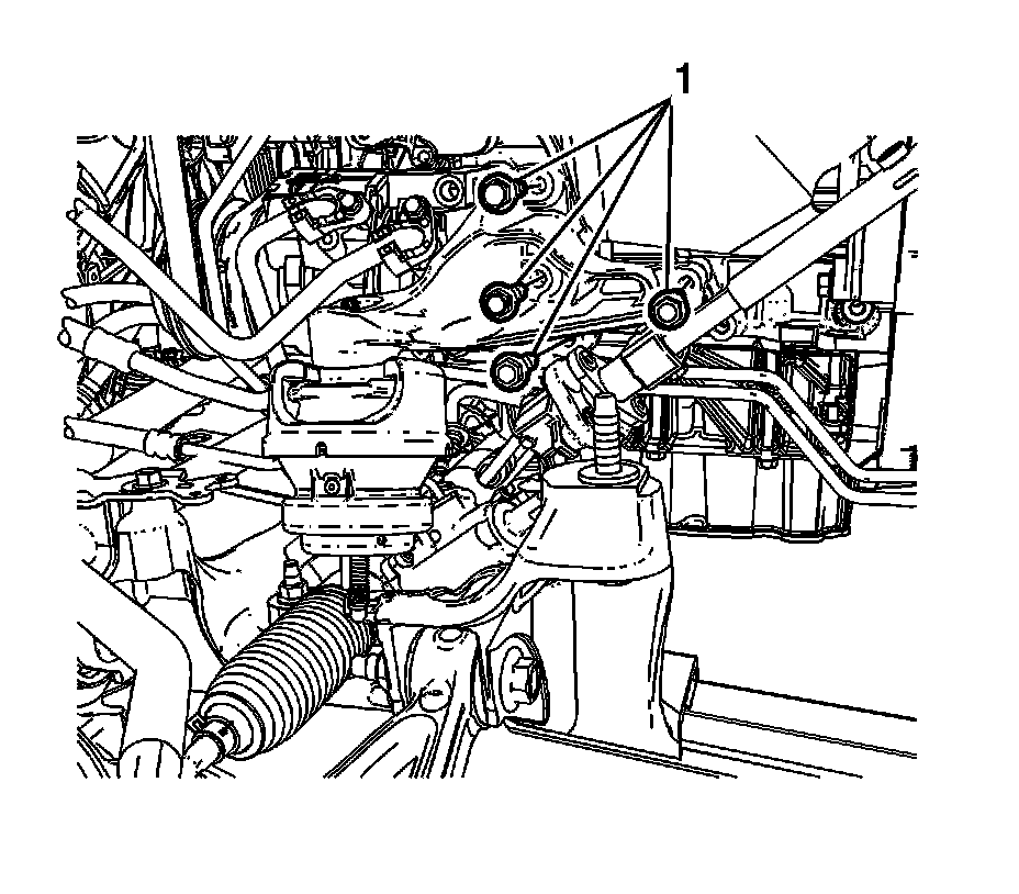 5. Install the engine mount bracket bolts (1) and tighten to60 Nm (44 lb ft).