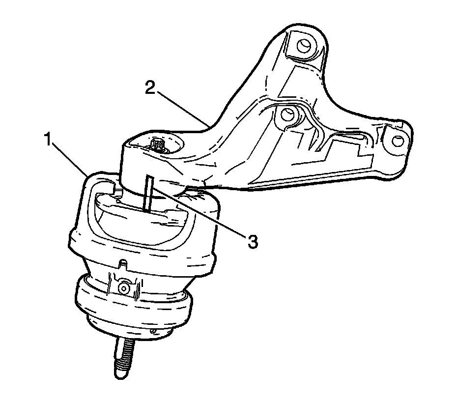 2. Align the location mark (3) of the engine mount (1) to the engine mount bracket (2).