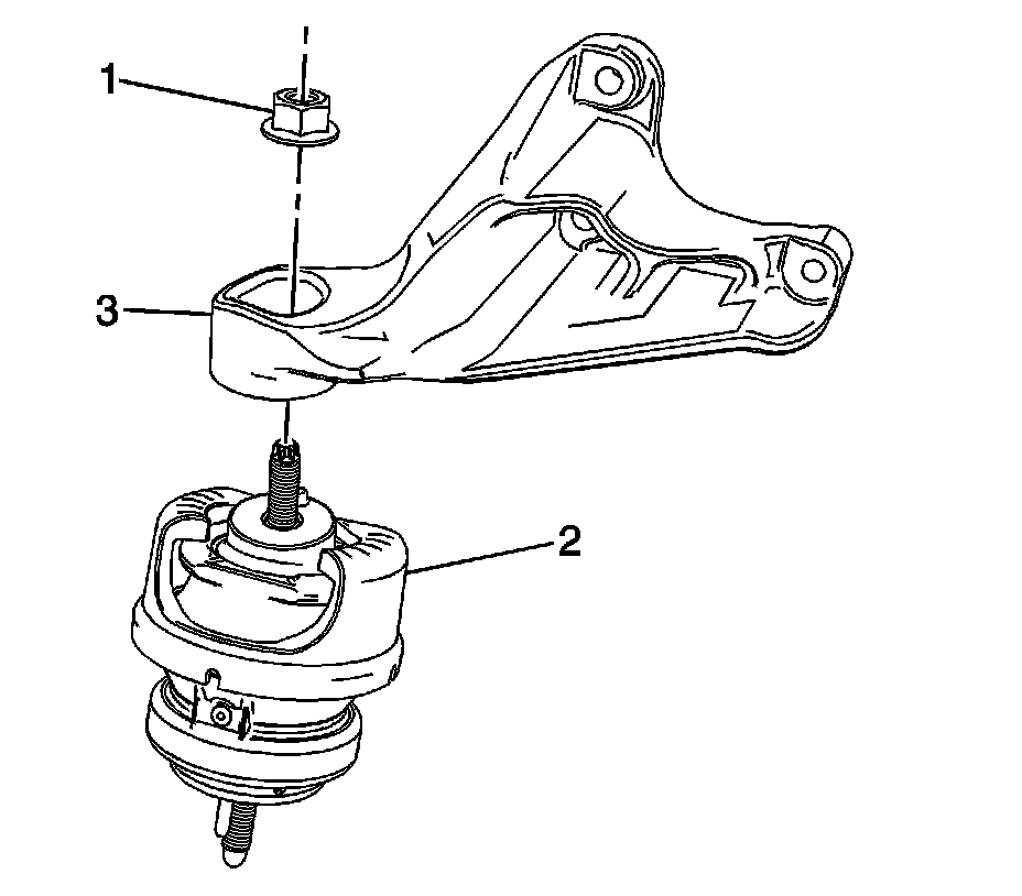 1. Position the engine mount bracket (3) to the engine mount (2).