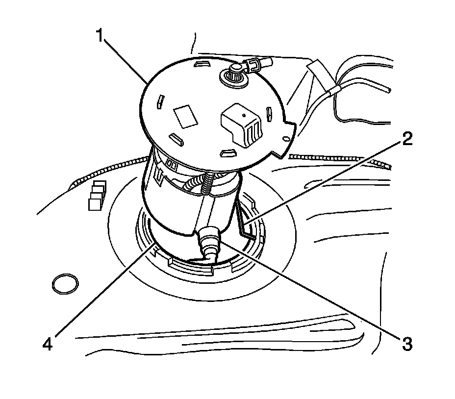 3. Partially install the primary fuel tank module (1) to the fuel tank.