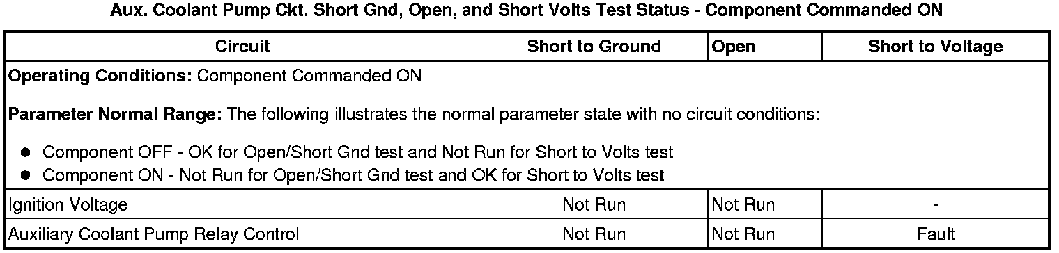 Important: The control circuit for the auxiliary coolant pump relay is pulled-up to voltage within the ECM, 2.6-4.6 volts on the control circuit is normal.