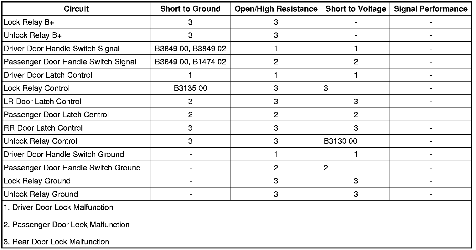 • If the driver door lock switch is inoperative, refer to Driver Door Lock Malfunction.