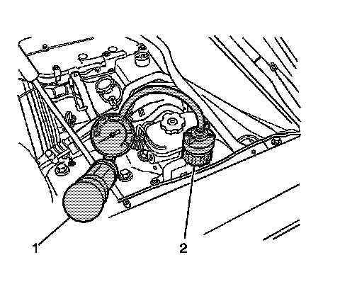 4. Use the J 24460-01 (1) with J 42401 (2) in order to apply pressure to the cooling system.