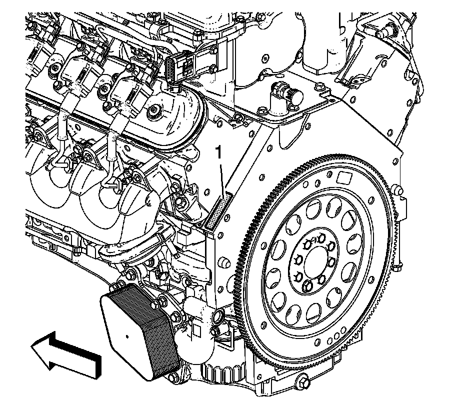 The vehicle identification number (VIN) is located on the left side rear of the engine block (1) and is typically a 9 digit number stamped or laser-etched onto the engine at the vehicle assembly plant.