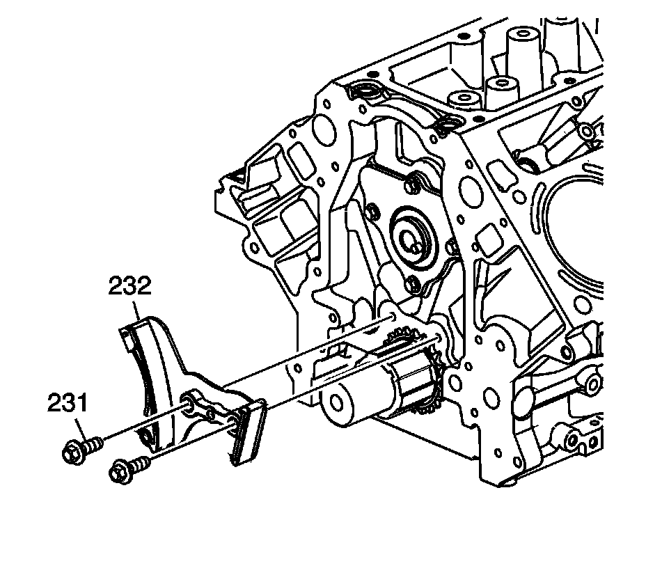 3. Remove the bolts (231) and timing chain tensioner (232).