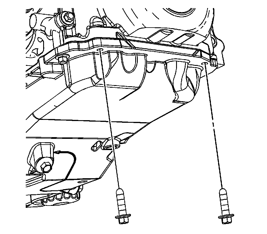 3. Remove the 2 front oil pan to front cover M8 bolts.