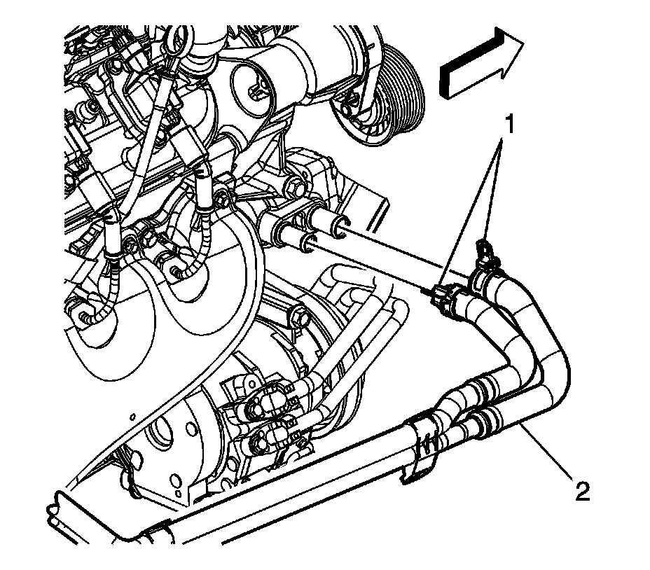 5. Remove the heater hoses (2) from the engine.