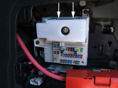 Remove the battery access door to gain access to the rear fuse block. Proceed with the following steps:
