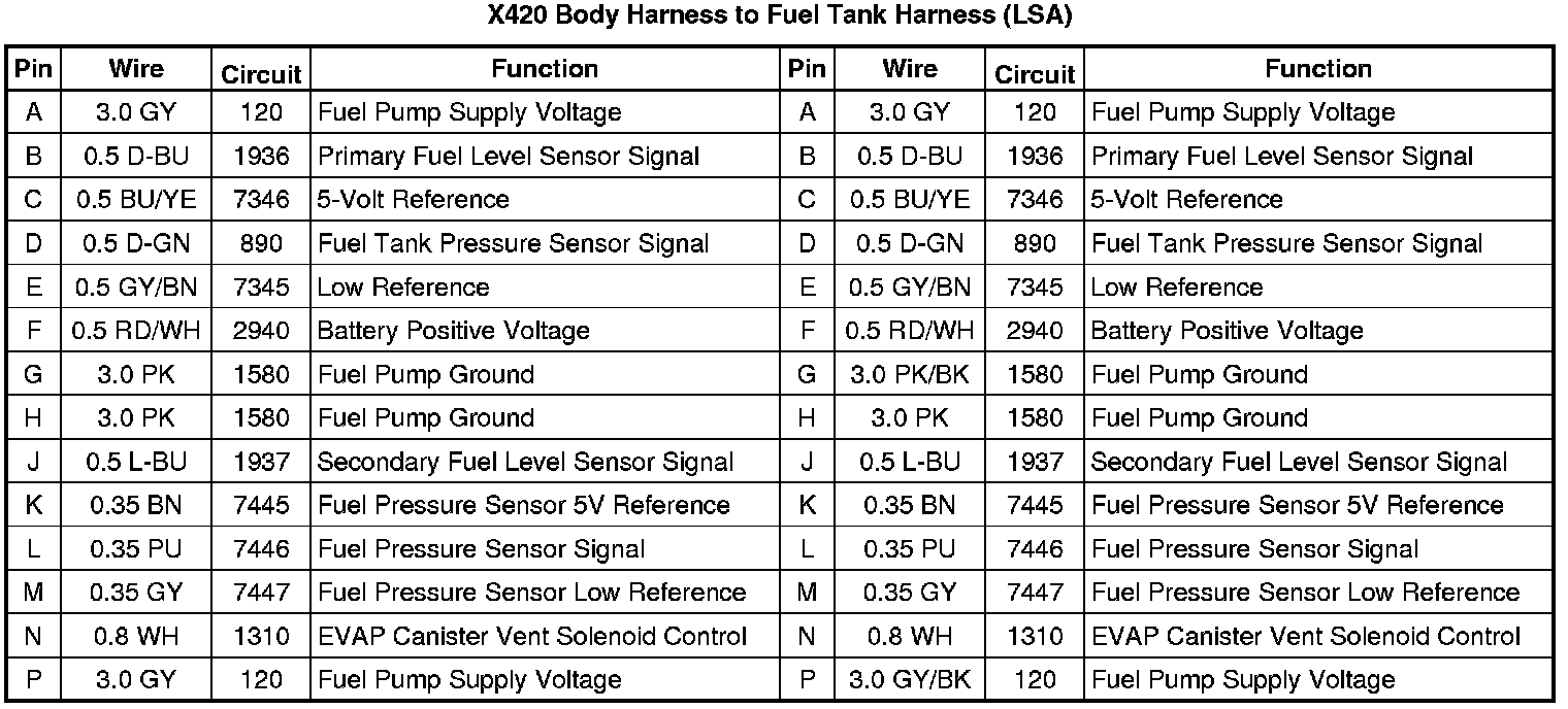 X420 Body Harness to Fuel Tank Harness (LSA)