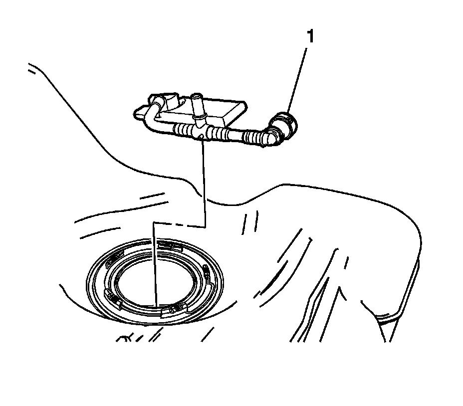 6. Disconnect the fuel transfer hose quick connect fitting (1). Refer to Plastic Collar Quick Connect Fitting Service (Plastic Collar Quick Connect Fitting Service).