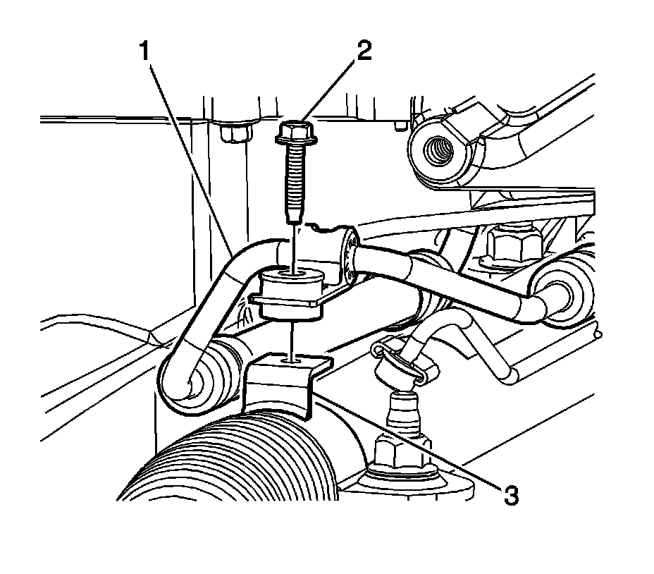 3. Install, but do not tighten, the bolt (2) in order to retain the gear inlet hose (1) to the steering gear flange (3).