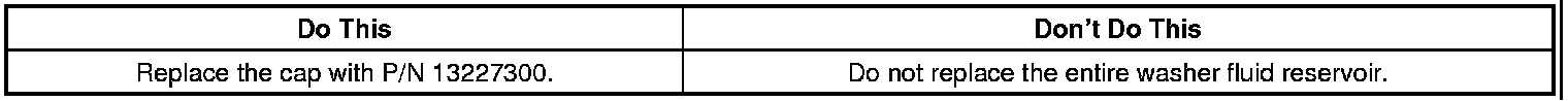 A revised windshield washer solvent container cover/cap is now available separately for service. This component was previously available only as part of the windshield washer solvent container.