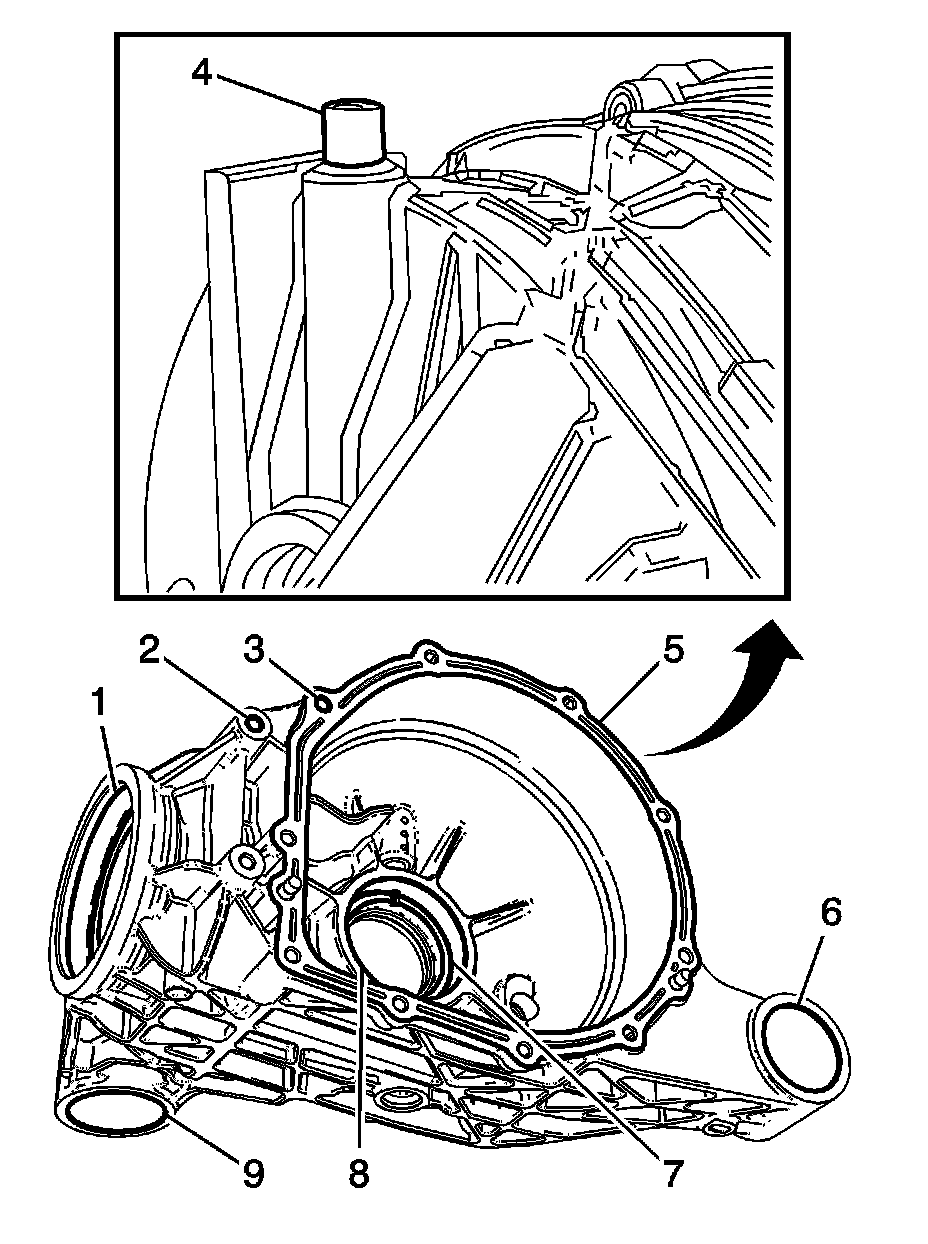 * The rear differential support bushing bore (6)