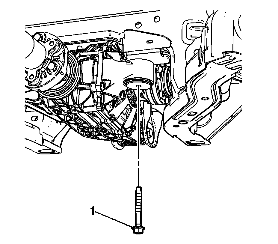 4. Remove the left front rear differential support bushing bolt (1).