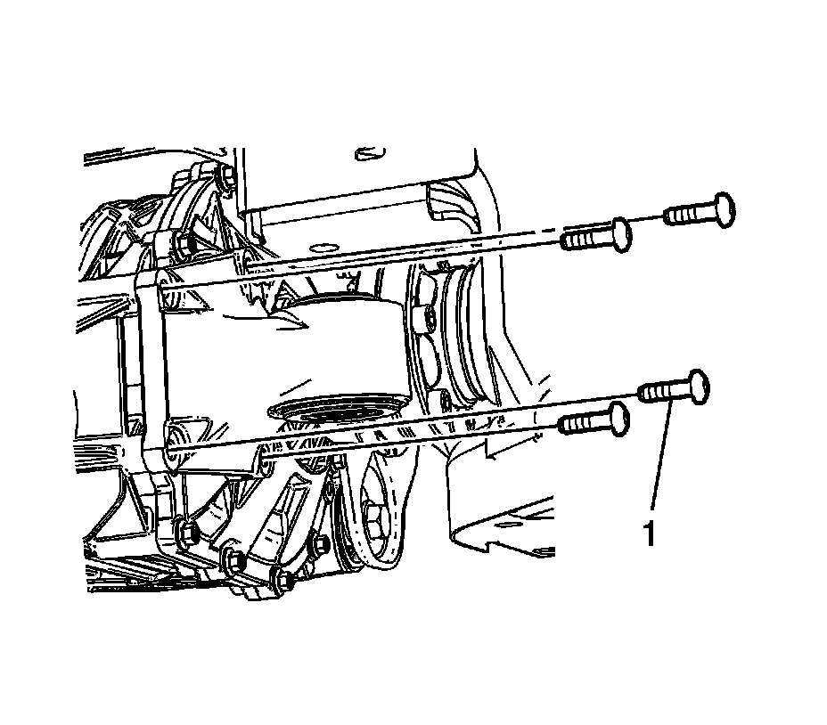 5. Remove the left differential support bushing bracket mounting bolts (1).