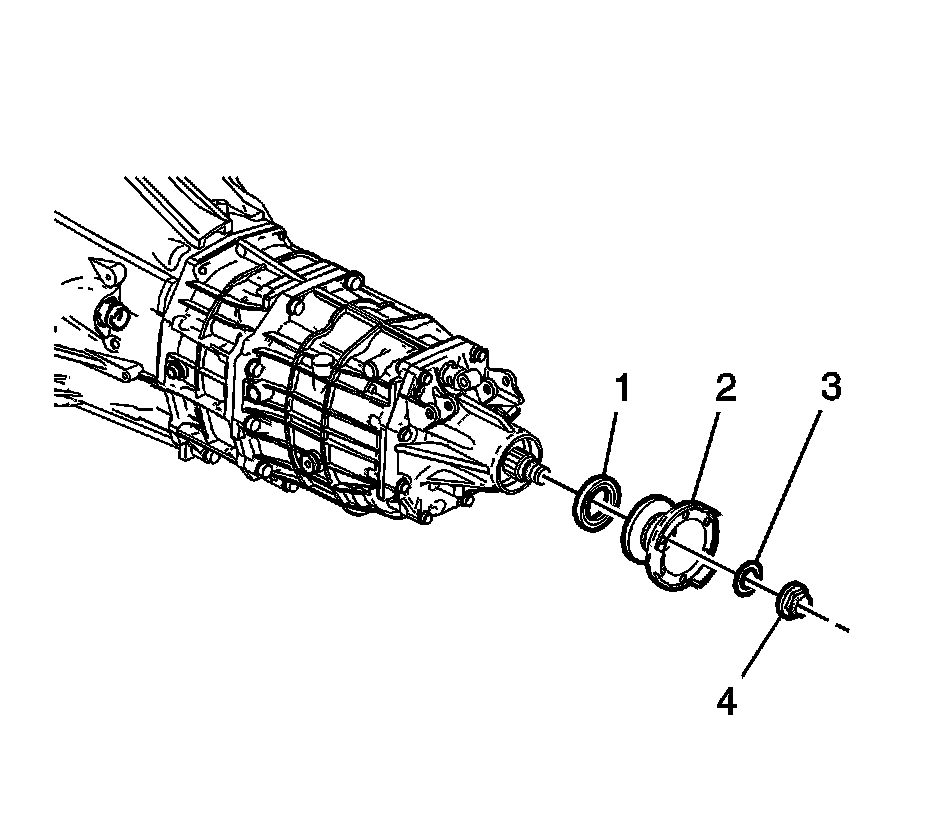 6. Remove the left front bushing and mounting bracket (2).