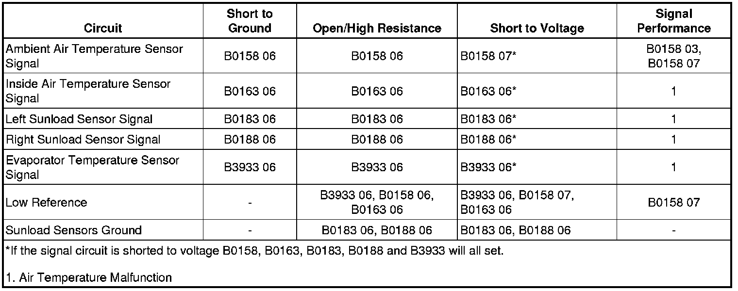 - Passenger Compartment Temperature Sensor Circuit Short to Ground or Open