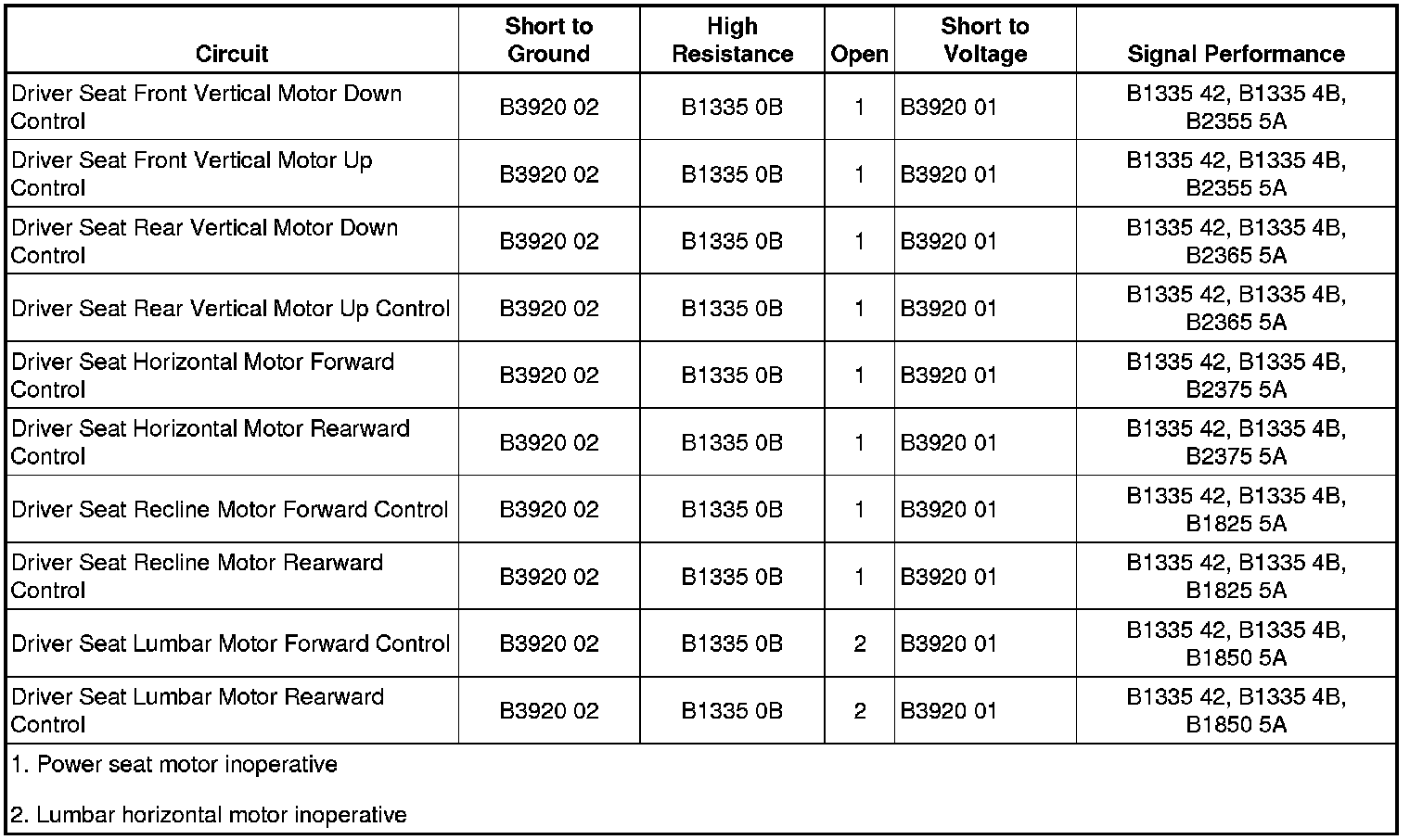 * Driver seat lumbar horizontal motor terminal A and terminal B