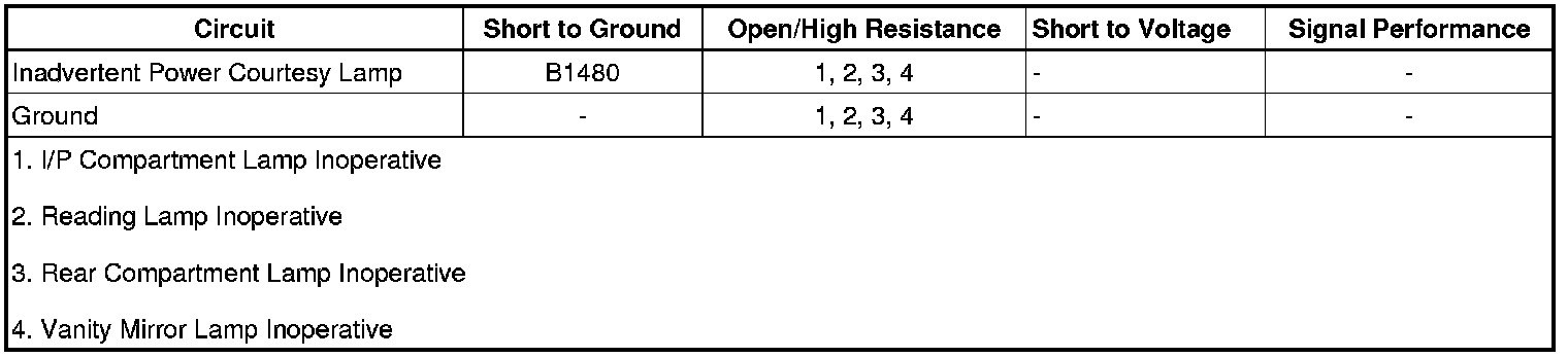 The BCM detects a short to ground on the inadvertent power courtesy lamp circuit.