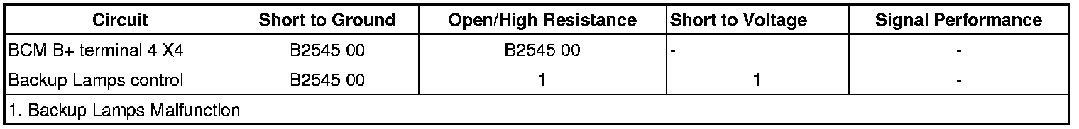 When DTC B2545 00 is present, the backup lamps will not operate.