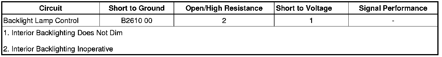 The BCM will not DIM or illuminate any backlighting supplied by the backlight lamp control circuits.