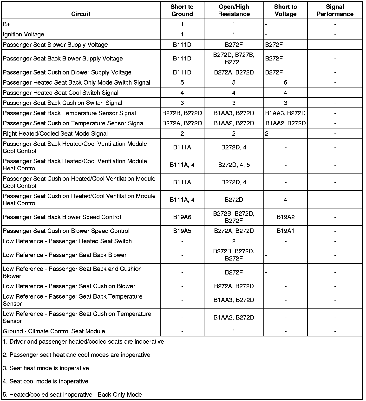 * In order to perform valid tests when diagnosing the climate control seat system, the ignition must be cycled OFF then ON between each test in order to reset the CCSM.