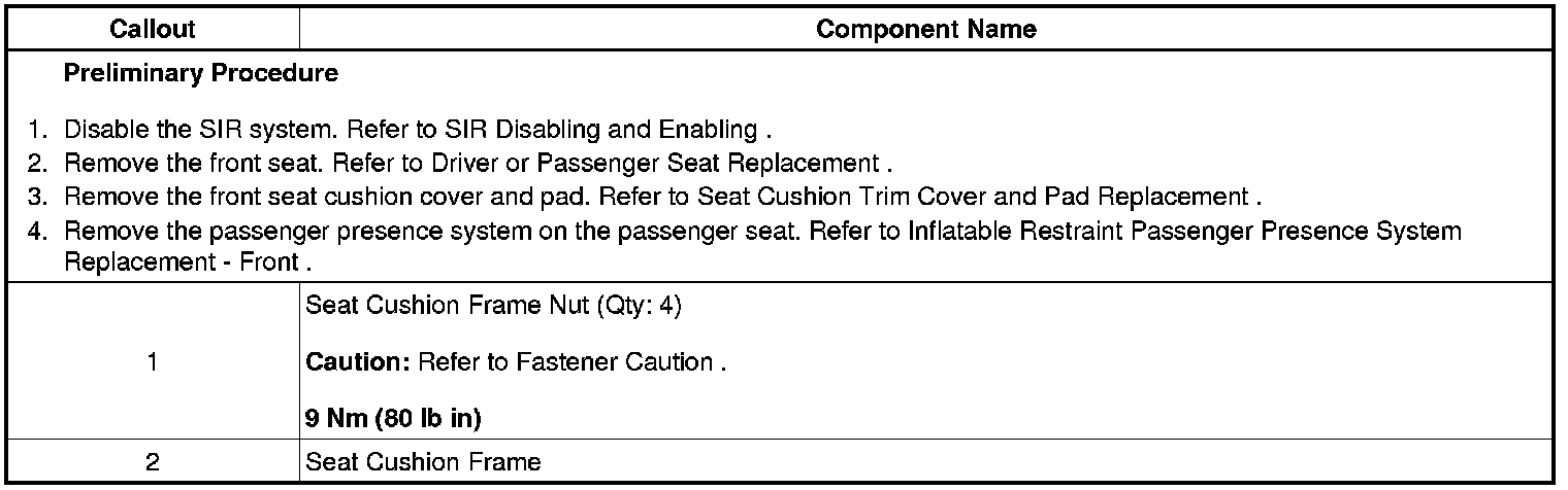 Driver or Passenger Seat Cushion Frame Replacement
