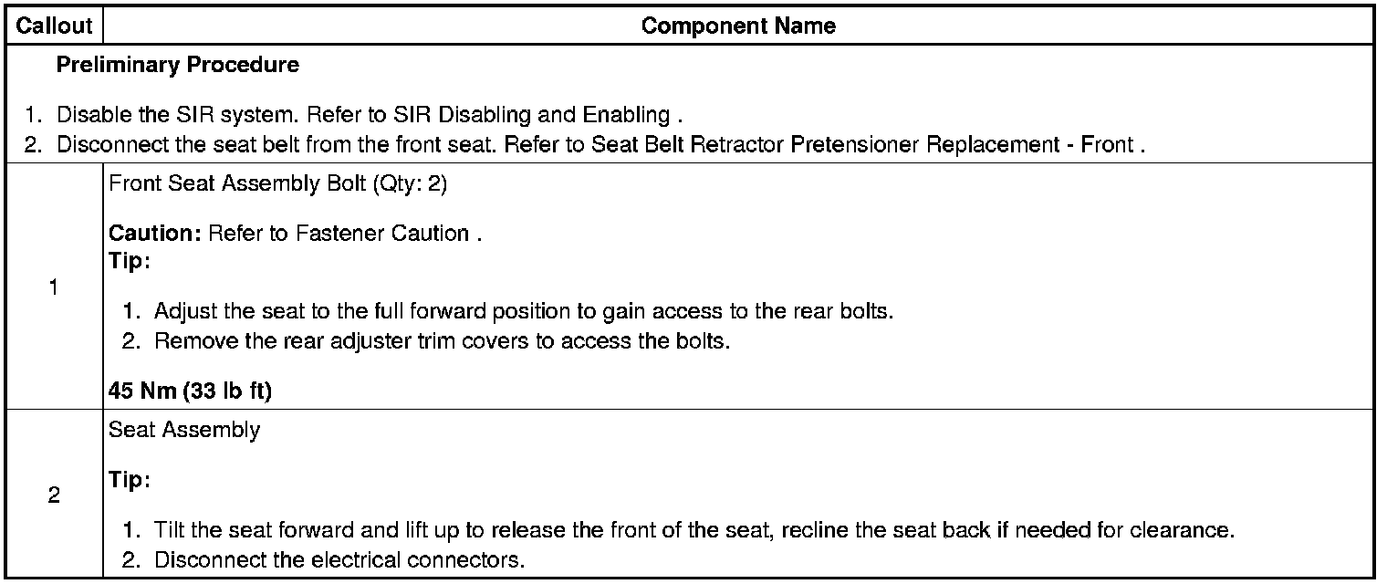 Driver or Passenger Seat Replacement