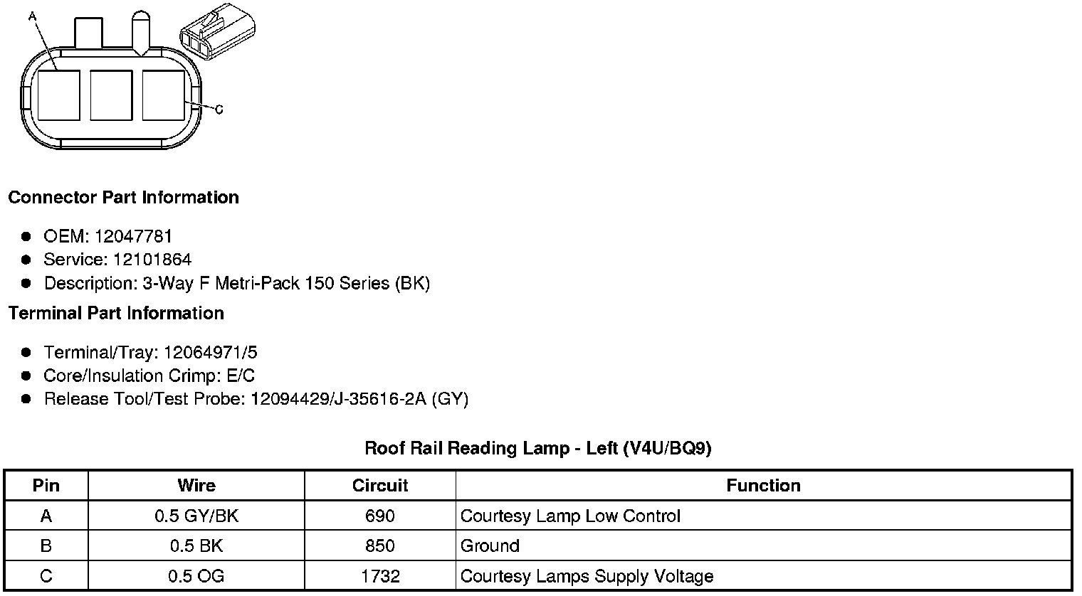 Roof Rail Reading Lamp - Left (V4U/BQ9)