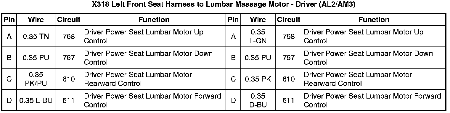 X318 Left Front Seat Harness to Lumbar Massage Motor - Driver (AL2/AM3)