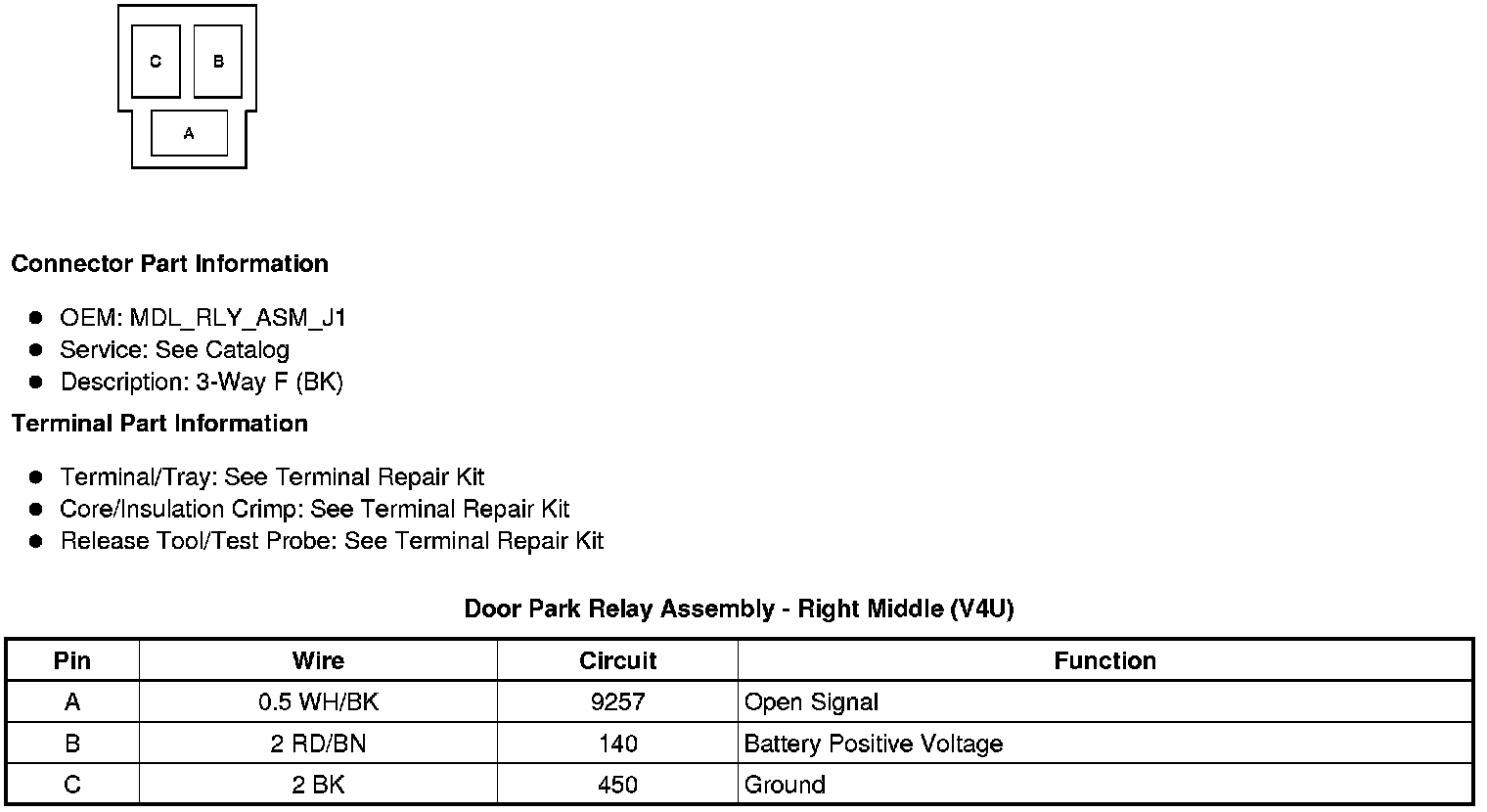 Door Park Relay Assembly - Right Middle (V4U)