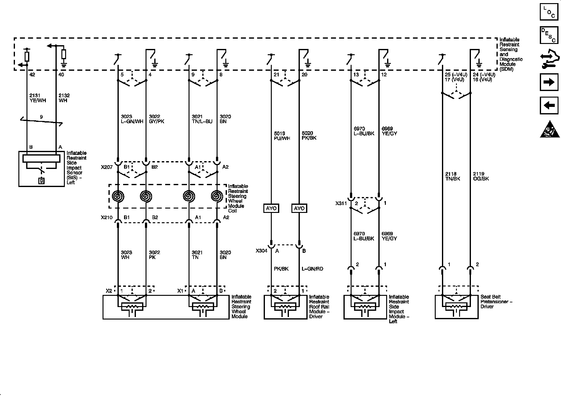 Right Side Impact Sensor and Module, Roof Rail Module, I/P Module, Pretensioner