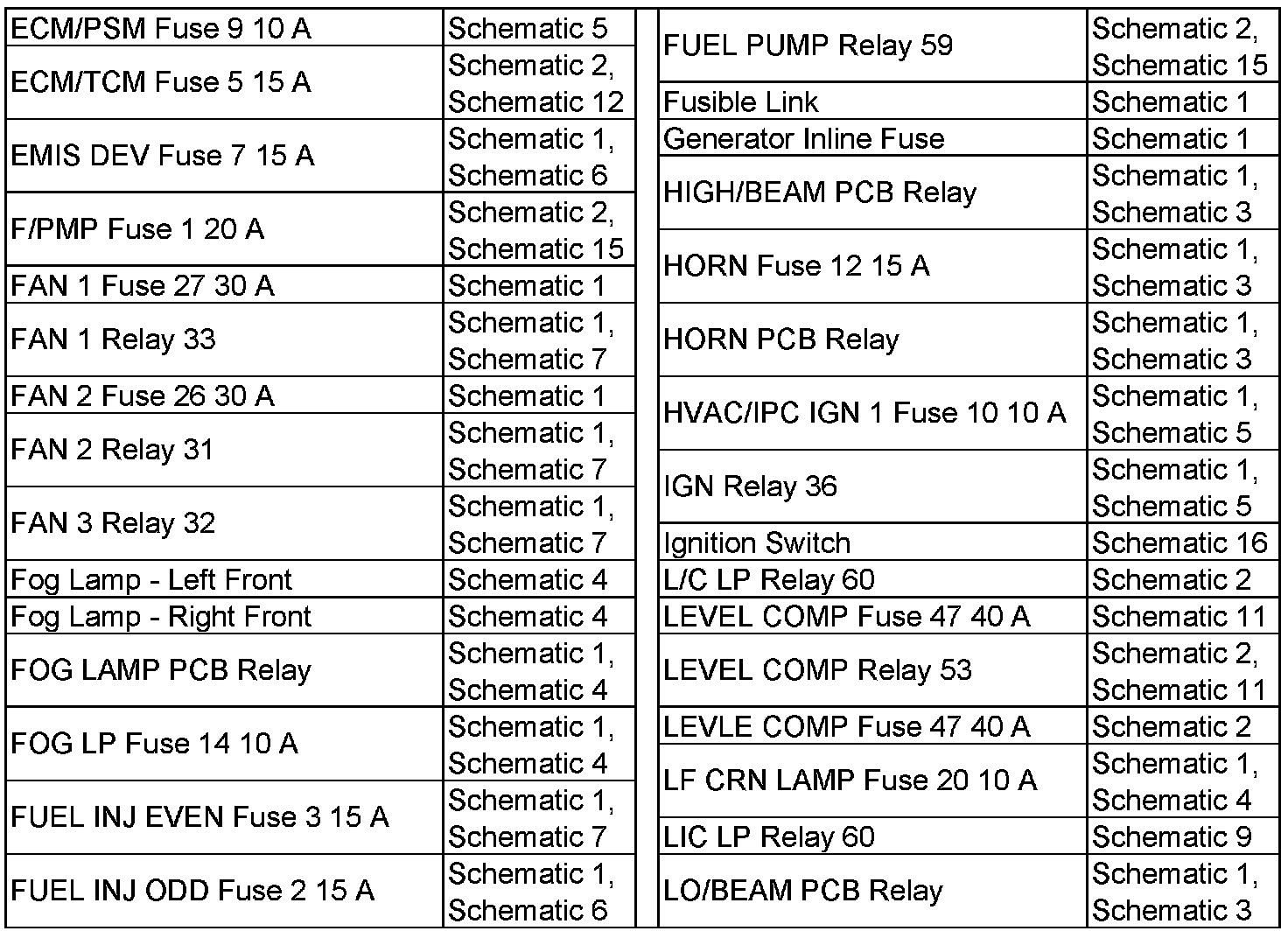 ECM/PSM Fuse 9 10 A - LO/BEAM PCB Relay: