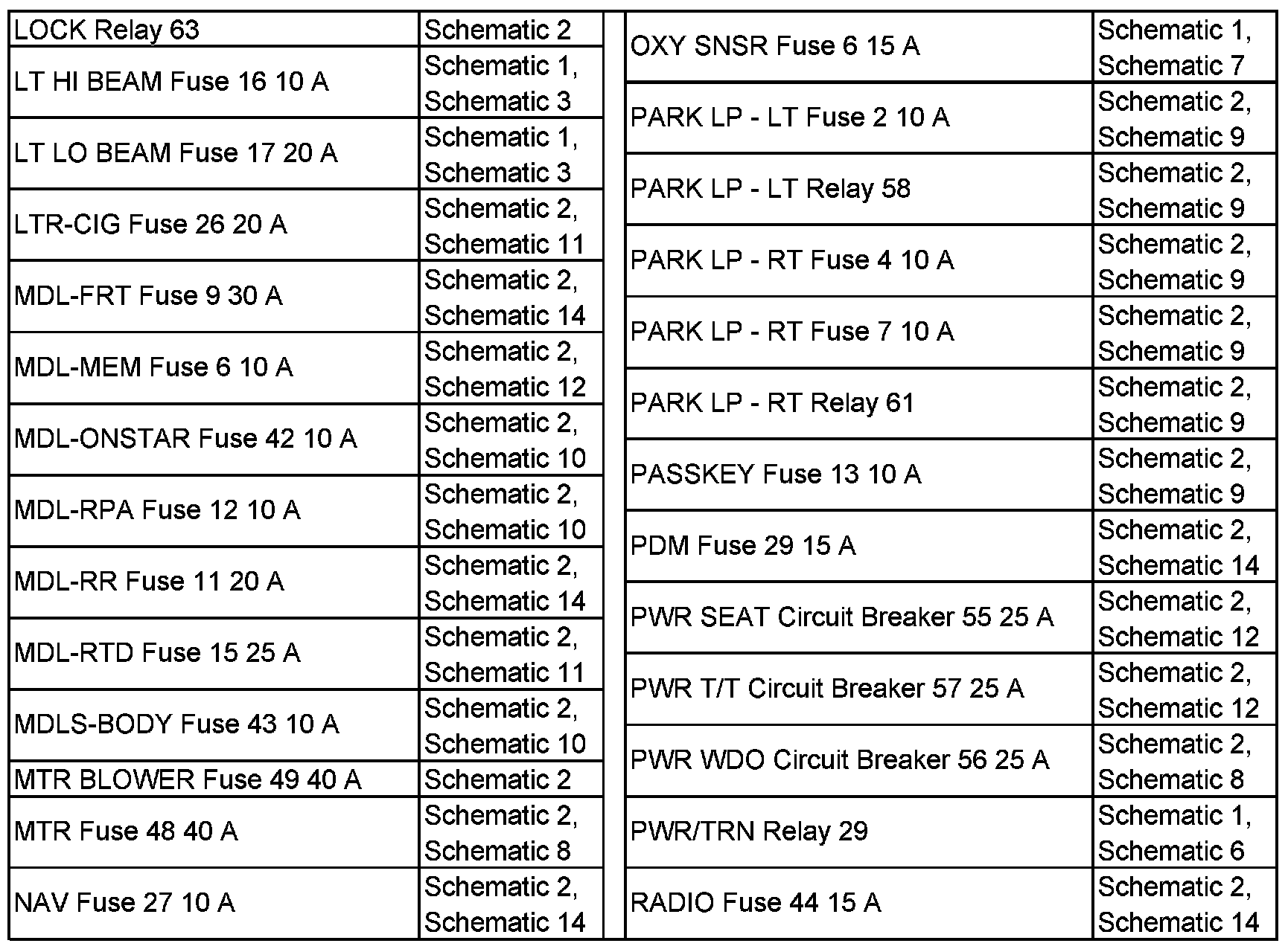 LOCK Relay 63 - RADIO Fuse 44 15 A:
