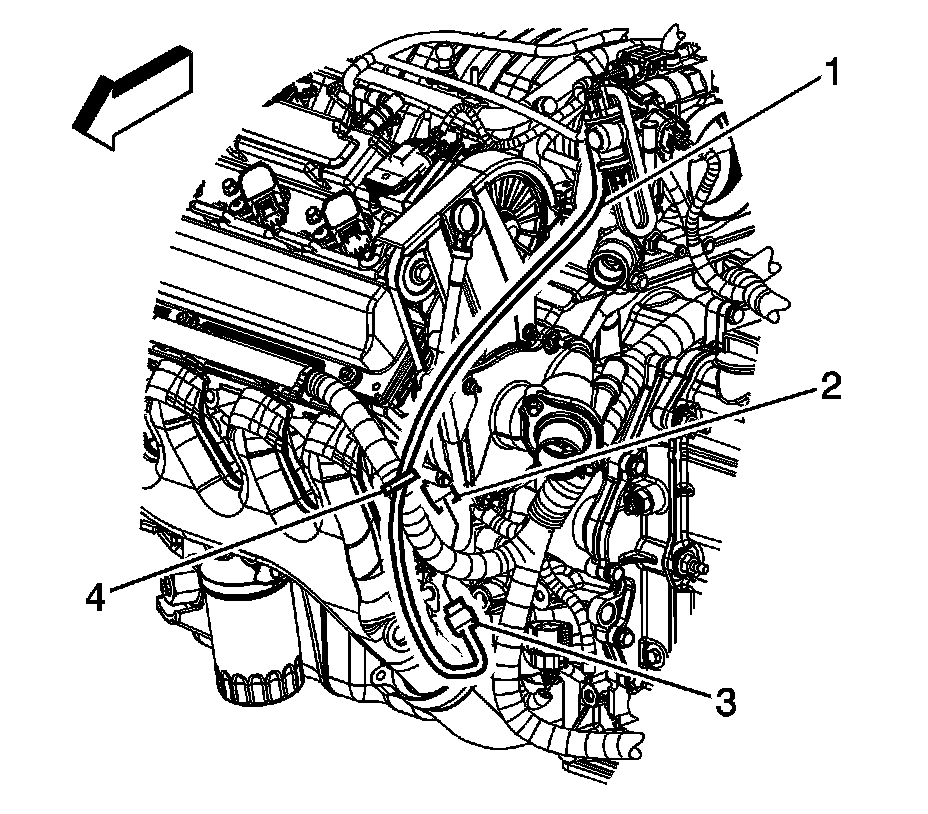 4. Cut the coolant heater cord strap (4) at the engine harness.