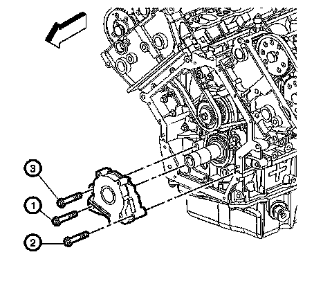 1. Tighten the oil pump mounting bolts in sequence to 10 Nm (89 lb in).