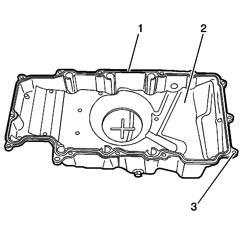 * Gouges or damage to the oil pan sealing surfaces (1)