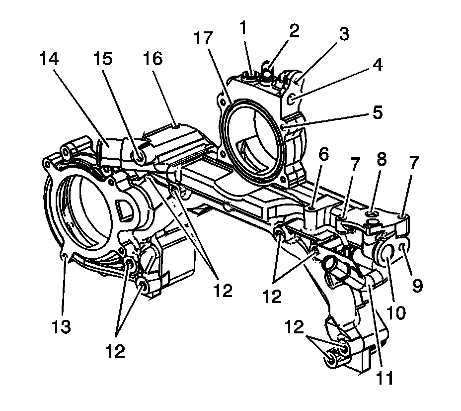 * Corrosion or damage to the throttle body fastener bolt holes (5)